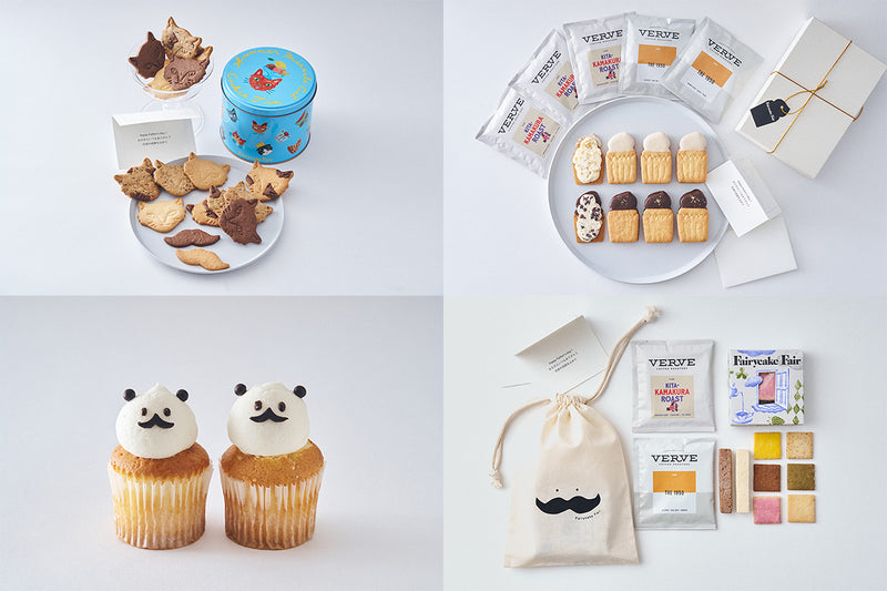 ひとつひとつ丁寧にデコレーションしたカップケーキ「バニラヒゲパンダ」を始め、「神様のいたずらサマーネコクッキー缶 ヒゲクッキー付」や、コーヒーとビスケットのヒゲ巾着ギフトなど、“ヒゲ”をモチーフにした父の日限定商品を展開。子どものキモチがキュートに伝わるような、見ても食べてもたのしいお菓子をご用意しました。