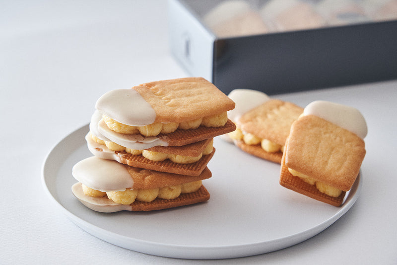 パッションフルーツの爽やかな酸味が効いた果実感たっぷりの生バタークリームを、丁寧に焼き上げた香ばしいビスケットで一つ一つサンド。溢れる夏の輝きを詰め込んだ“特製生バターサンド”です。暑さを和らげるフルーティーな味わいと、ひんやりとした冷たいクリームのリッチで滑らかな口溶けで、お子さまからご年配の方まで幅広くお楽しみいただけます。夏休みのおやつや夏ギフトにもおすすめです。