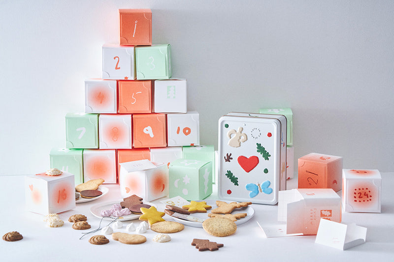 12月1日〜24日まで毎日一つずつ開けるお楽しみ。手づくりお菓子を中心に、とある日には特別なサプライズをしのばせています。オプナーからお手紙が届いたような気持ちになれるミニ封筒入り「タトゥーシール」、アクセサリーやツリーの飾りにもなる「天使のチャーム」など、心煌めく小っちゃなギフトのスペシャルサプライズが受け取れます。タトゥーシールは本商品だけの限定デザインです。