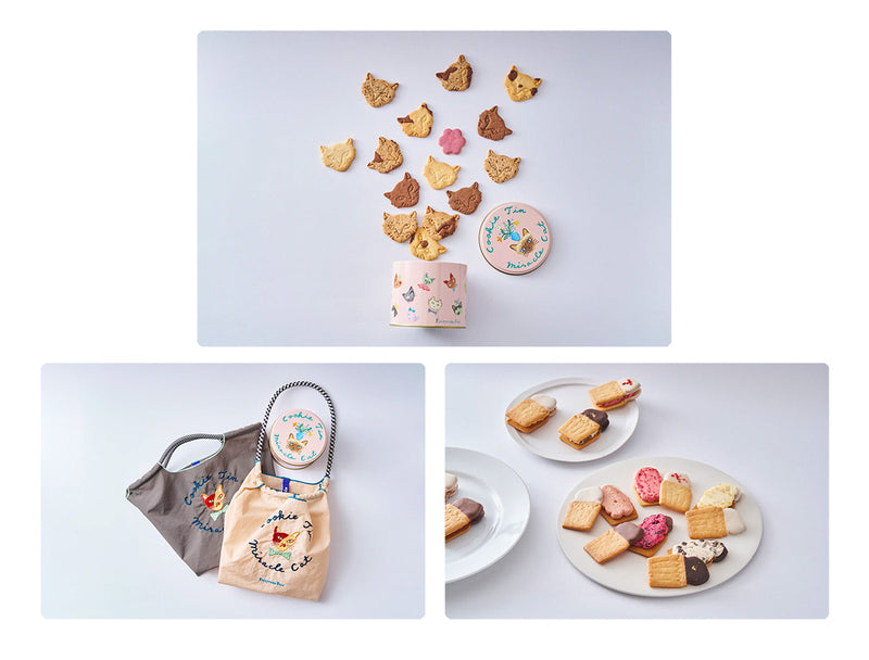 珍しい柄や不思議な模様をもつ「神様のいたずら」と呼ばれる猫たちをモチーフに、発酵バターやカカオ、チョコチップを使って焼き上げたクッキーをアソートし、甘酸っぱいラズベリーのアイシングで彩ったお花型クッキーを組み合わせました。フェアリーケーキフェアがお届けする手づくりクッキーならではのユニークな表情が特徴で、一匹一匹の個性が楽しめる、猫好きにはたまらないクッキー缶です。可愛らしさと華やかさを感じる春らしいひと缶となっています。