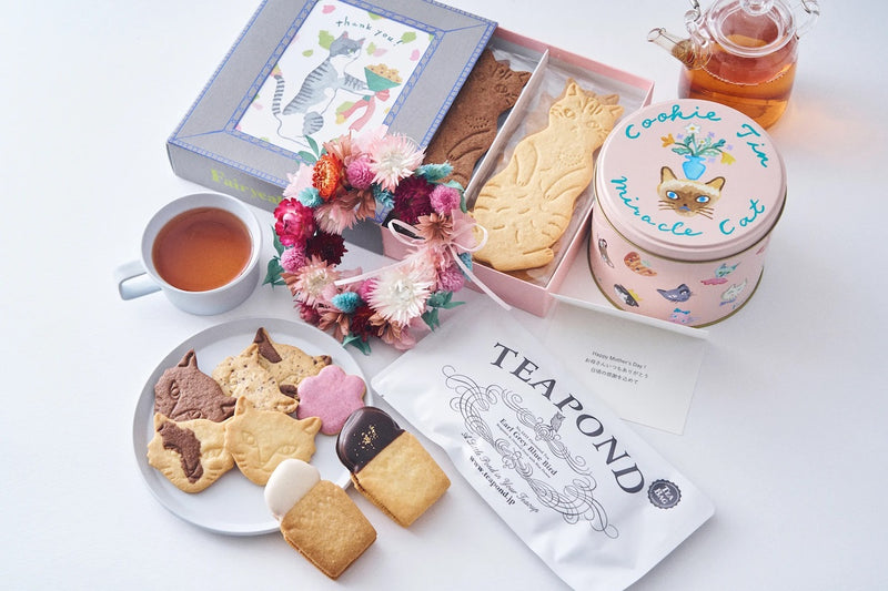 東京・清澄白河に本店を構える紅茶専門店『TEAPOND〈ティーポンド〉』の一番人気の銘柄「アールグレイ ブルーバード」と、フェアリーケーキフェアの「ネコクッキーレターボックス」をセットにした、もらってすぐにお茶の時間が楽しめる母の日ギフトも販売いたします。