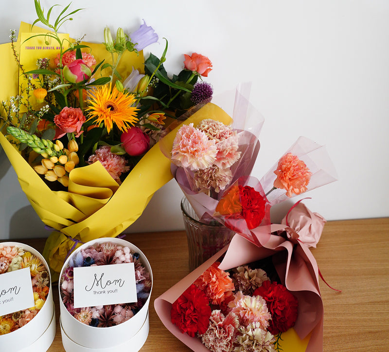 ご自宅用や母の日のギフトにぴったりな生花のブーケやドライフラワーアレンジメントをご用意いたします。