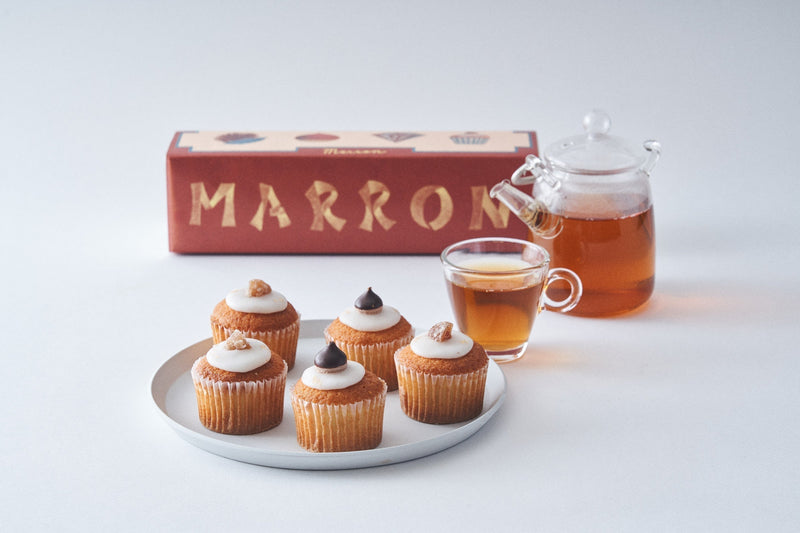 渋皮煮の栗をあらかじめオーブンで焼き、さらにカップケーキと一緒に焼き上げることで旨味を凝縮。ほっくりとした食感と深い味わいが際立つ、本格的な和栗スイーツに仕上がりました。栗好きも満足できる、この季節ならではの特別なカップケーキです。